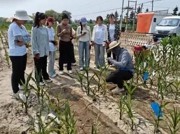 随后,同学们来到试验田参观了玉米植株的栽培方式与玉米单倍体植株的繁育,在国兴老师的带领下认识了试验田的规模和分区,为以后的实践工作奠定基础,接着便进行了简单的田间管理。