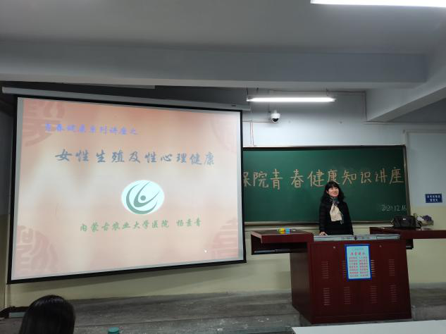 分别在东主503、124教室举办青春健康知识讲座。本次讲座由内蒙古农业大学校医院杨素青与刘丰老师主讲,全体大一学生参加。
