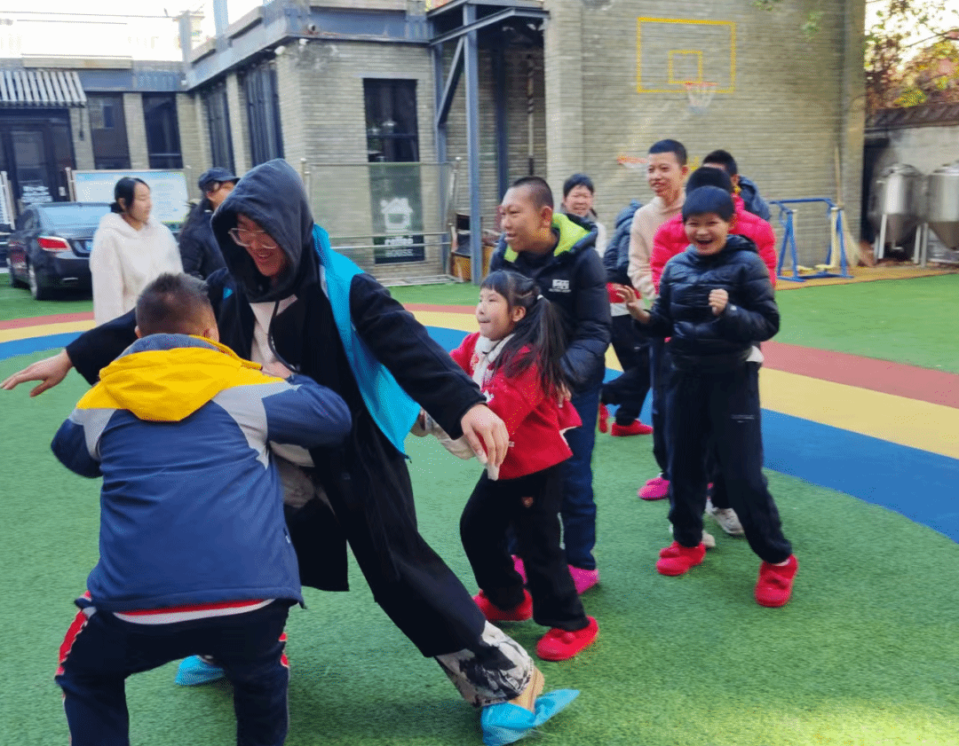 随后,大家来到户外的活动场地。志愿者们和孩子们一起玩起了“老鹰捉小鸡”“丢手绢”等经典游戏,志愿者们全身心投入,和孩子们一同奔跑、嬉戏,每一个笑容都无比真挚,每一次互动都充满温情。