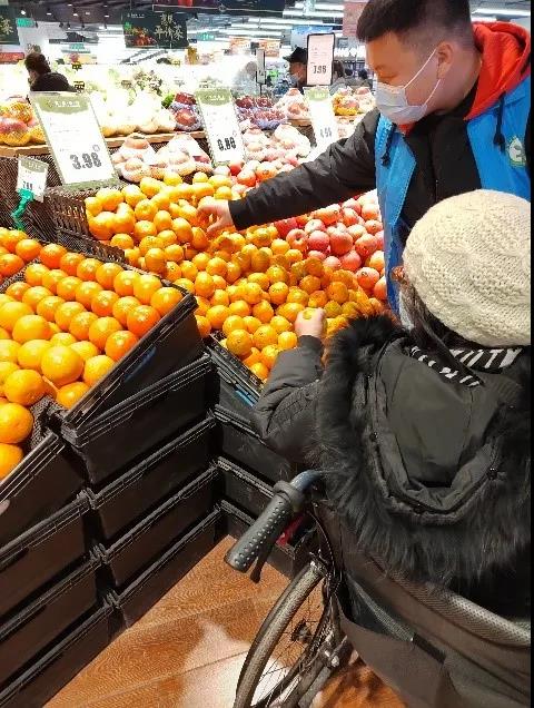 之后,志愿者们分工明确,积极配合,帮助叶大姐整理并且打扫房间,清洁结束后,房间变得焕然一新。志愿者们表示很开心可以帮助叶大姐做一些力所能及的事情。随后,大家一同推着轮椅和叶大姐去购物中心购买一些生活用品。一路上,大家欢声笑语,叶大姐耐心地引导着志愿者们不熟悉的路线。在大家努力的配合下,同学们进入到商场的地下超市,叶大姐拿出已经写好购买物品的笔记本,一一对照进行购买,在与叶大姐一起挑选蔬菜水果时,从叶大姐讲述中学到了许多的生活经验,明白了很多辨识新鲜蔬菜水果的小技巧。