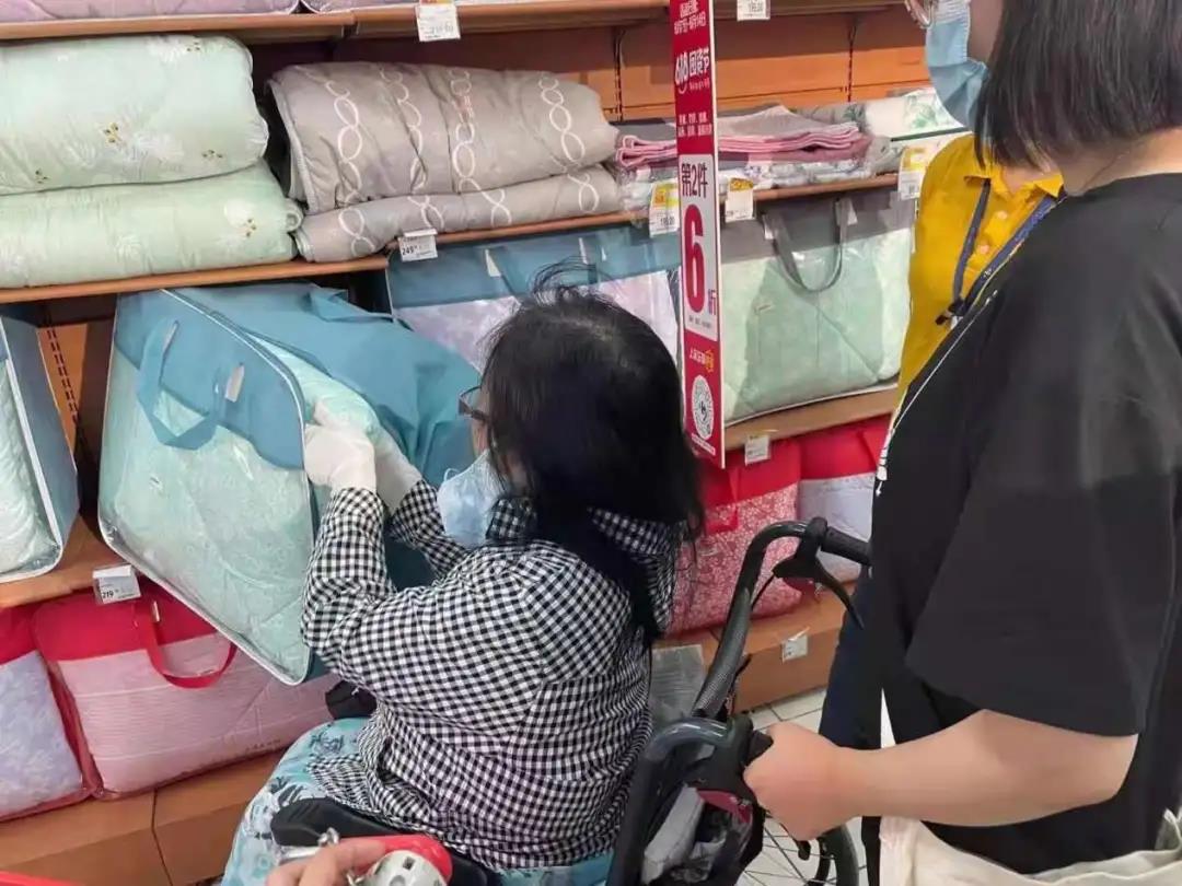 之后,志愿者们分头行动,积极配合,帮助叶大姐整理并打扫了房间,落了灰的屋子变得焕然一新,在阳光的映照下显的格外温馨。打扫过程中,有细心的志愿者发现叶大姐用的棉被已经发旧,有的地方都磨破了。于是,志愿者们推着叶大姐来到超市,采购了一些必要的生活用品,一起帮着叶大姐挑选了舒适喜欢的棉被。叶大姐激动的感谢了志愿者们,大家也在关爱他人、服务社会中体会到了感动与温暖。