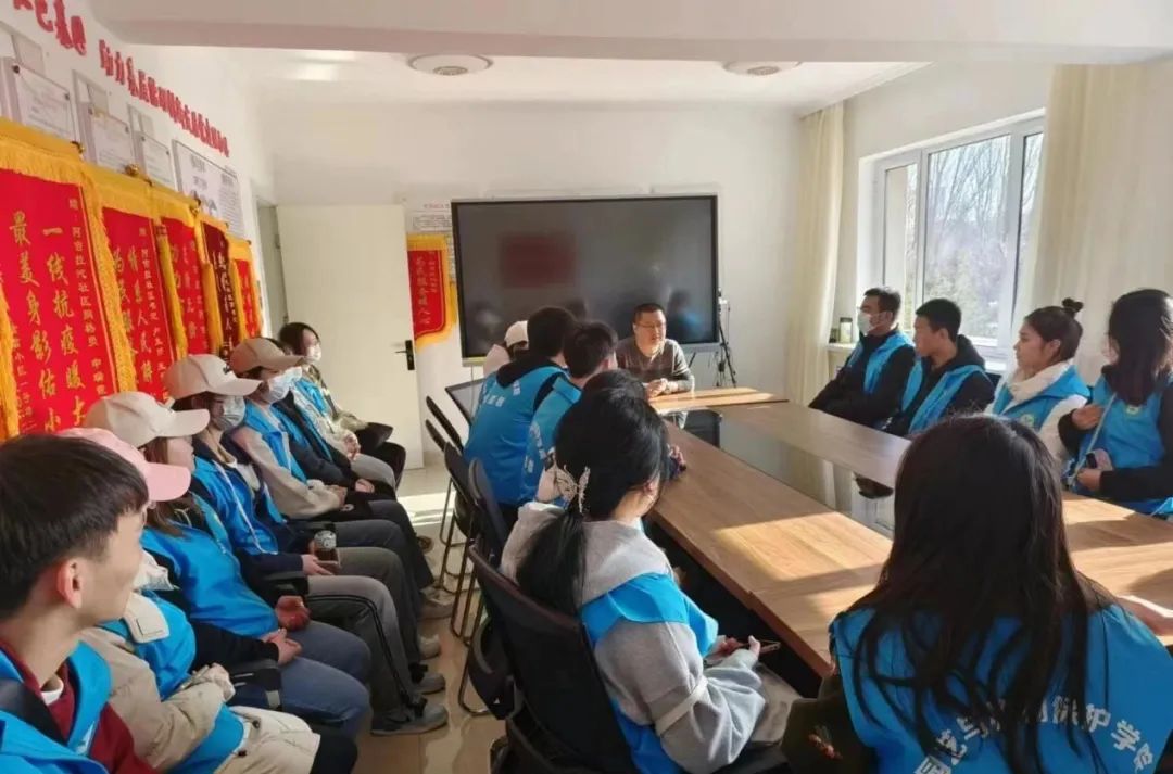 志愿者来到阿吉拉沁社区党群服务中心,负责人郭书记为同学们介绍了社区未来的规划以及志愿者服务的工作任务。