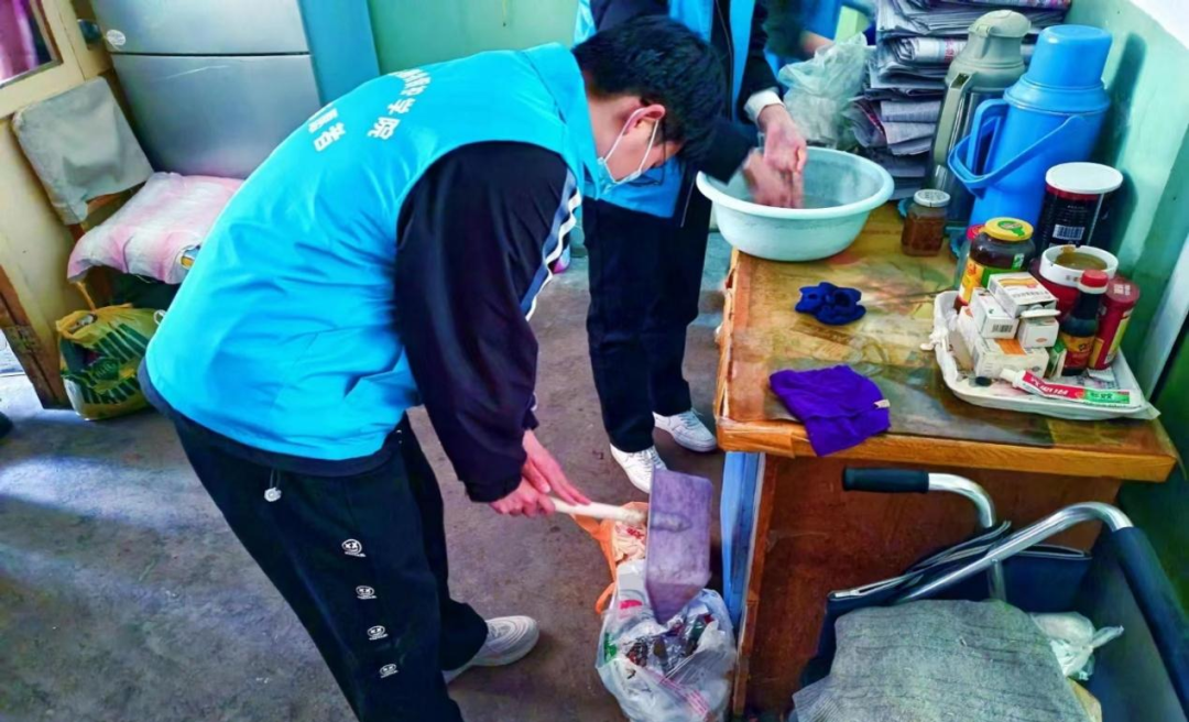 来到叶大姐的家里时,叶大姐热情地招待志愿者们进屋,看到有些志愿者穿着单薄,她细心地嘱托同学们要及时添衣,告诉大家虽然疫情已经过去,但是依旧不能掉以轻心,要做好防护措施。