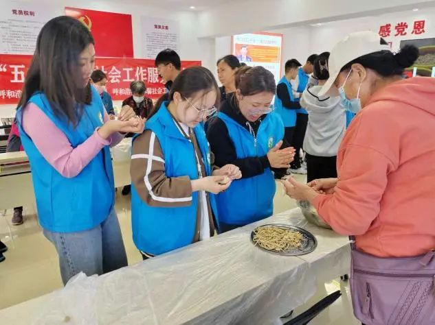 志愿者团队来到了阿吉拉沁社区党群服务中心参加民俗体验活动,深入了解非物质文化遗产——莜面背后的故事。