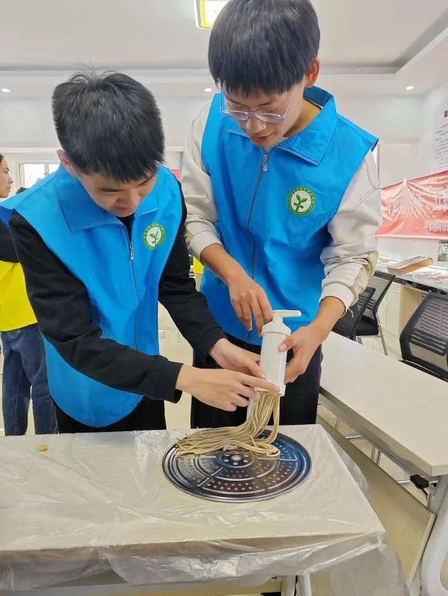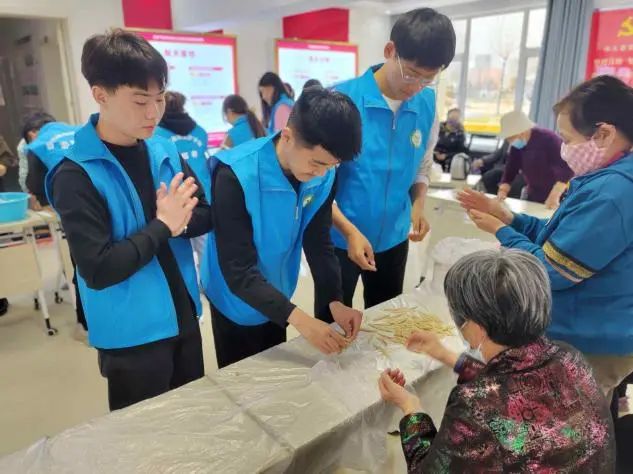 志愿者在观摩完具体如何操作后,便动起手来,每一个人都投入制作工艺中。一时间,现场气氛火热,大家边学边练,积极向长辈们请教,亲自动手体验制作特色美食的快乐。