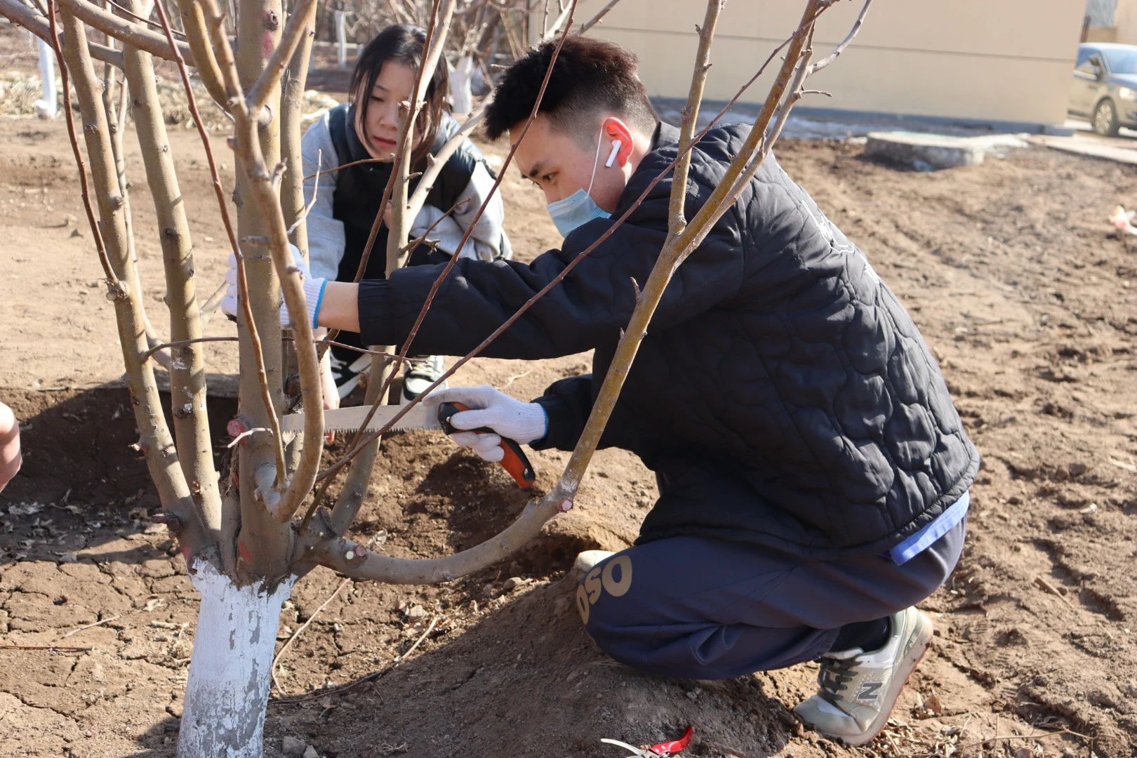 活动伊始,李老师讲解了如何辨认树种、修剪果树的基本知识和技巧。他告诉同学们要用心观察多叉枝、紧密枝和竞争枝,尽量保留健壮枝以及向外生长的枝条,留上不留下等。最后,李老师还讲述了修剪枝条的意义,使得同学们学习到修剪枝条是为了更好地通风和接受阳光,还可以使果树存活时间更长,果实产量增加,不会因为过多无用的枝条抢夺果实与果树生长所需的营养。大家听完讲解后,分组进行实践操作,虽然手法略显生疏,但都非常用心,结合李老师讲解的要领,不断调整自己的修剪力度。