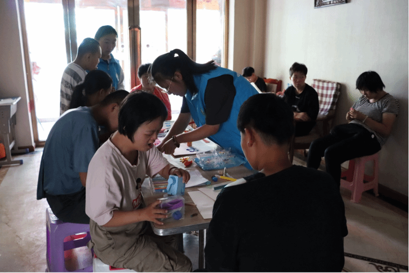的志愿者们赴呼和浩特市心语爱心康复中心开展关爱特殊儿童志愿服务活动。