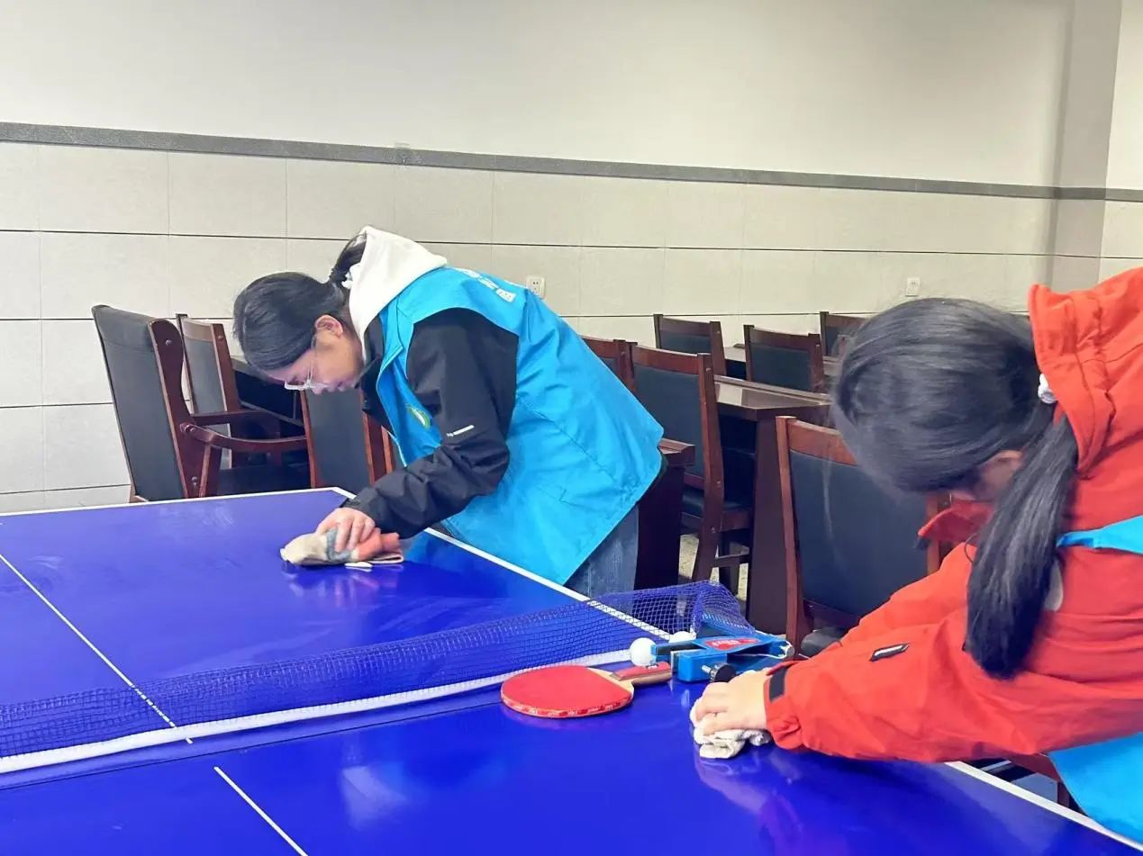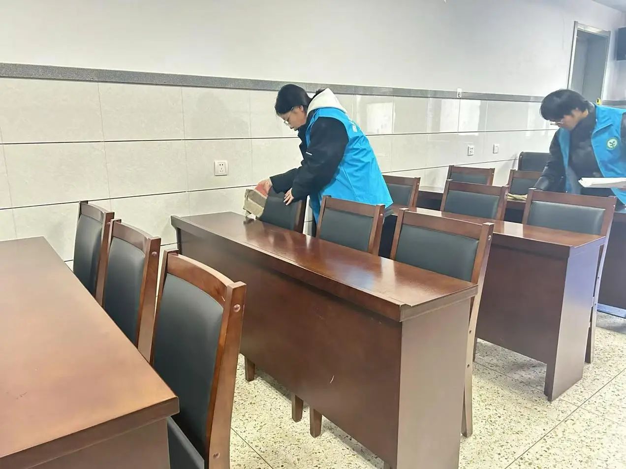 第二组志愿者则对学院会议室进行了全面清洁。大家分工合作,有条不紊。认真细致地擦拭桌椅、清理地面、整理物品,不放过任何一个卫生死角。经过大家的辛勤劳动,会议室被打扫的一尘不染,为师生营造了更加整洁舒适的会议环境。