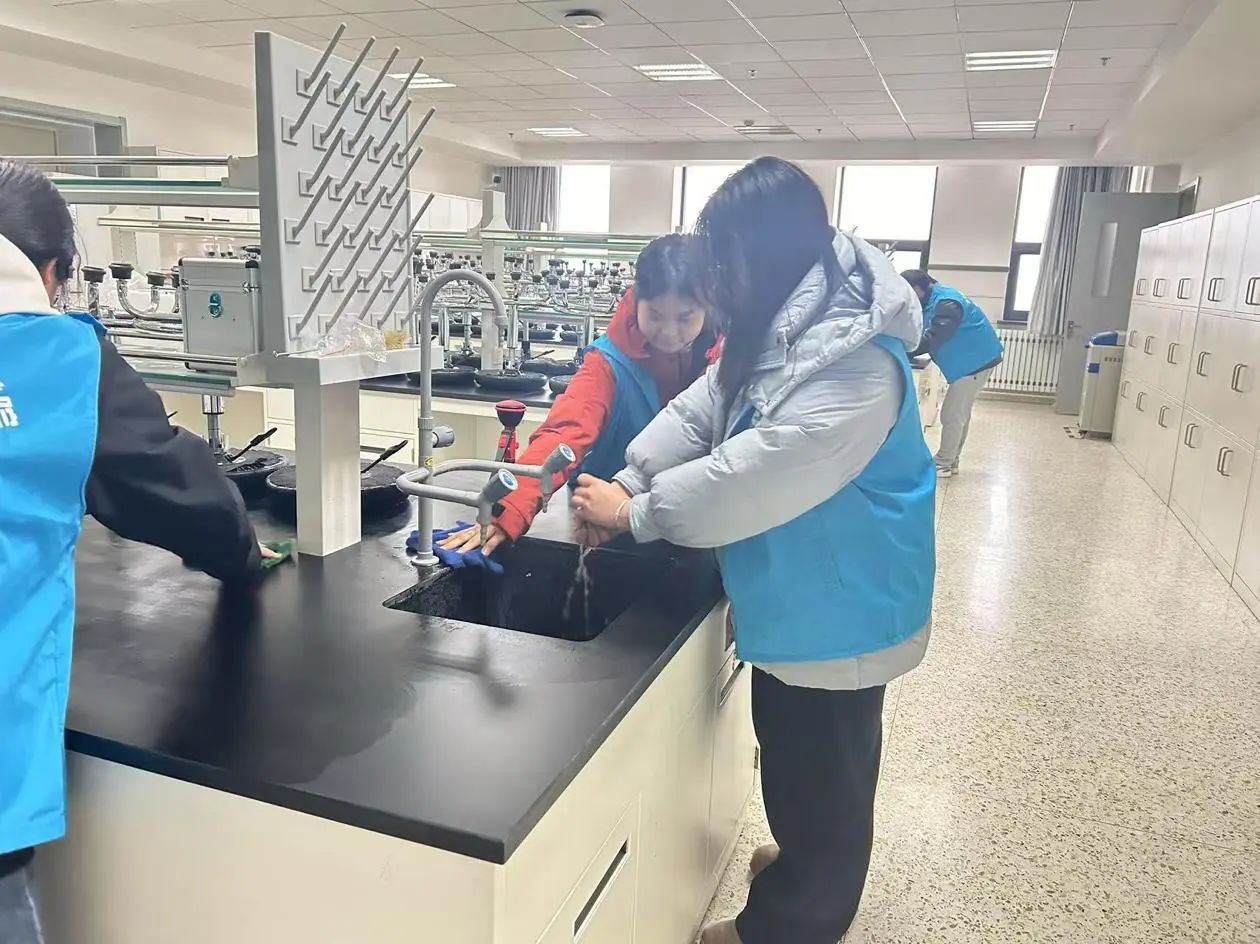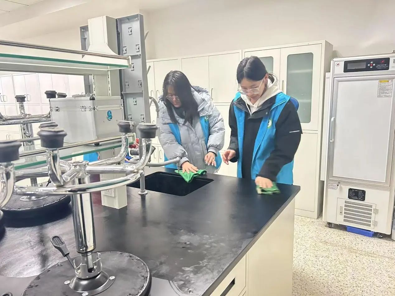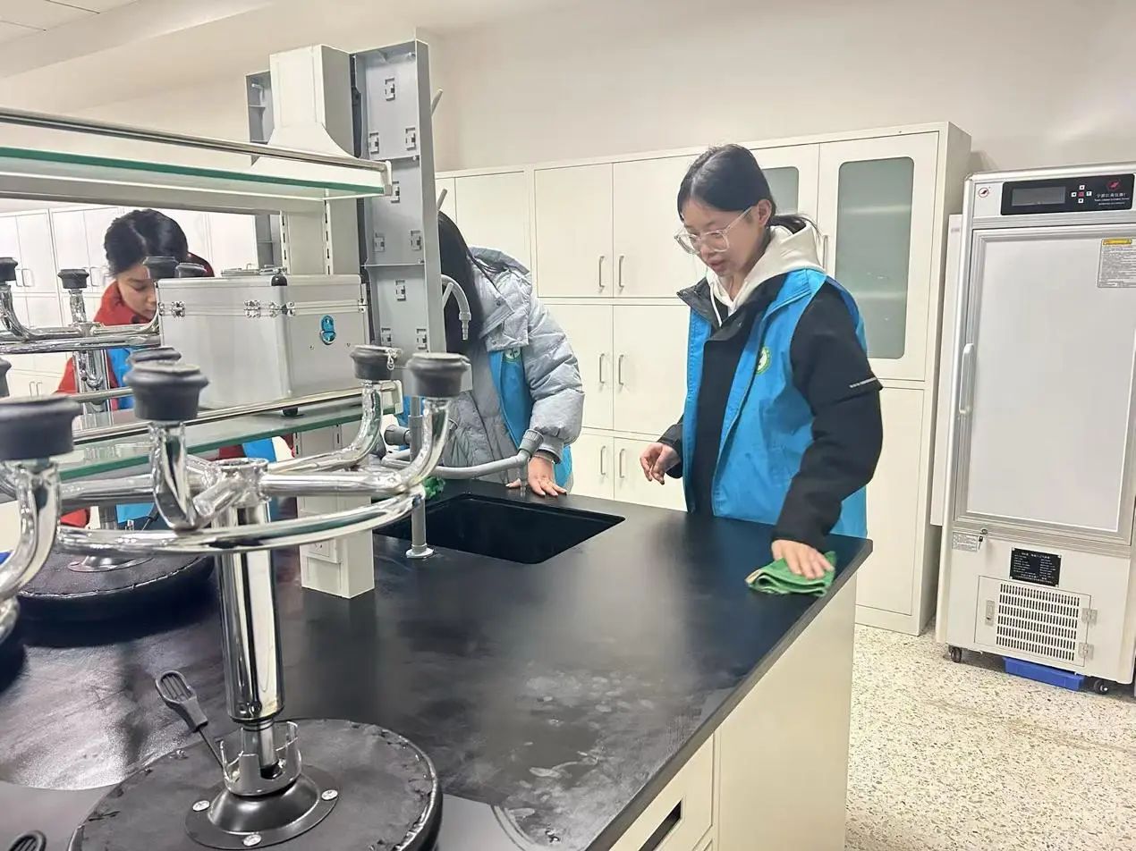 活动当天,志愿者们准时集合,迅速按照分组投入到工作中。第一组志愿者前往生科楼打扫实验室,他们分工明确,认真清扫地面、擦拭实验台、整理仪器设备。经过一个小时的辛勤劳动,实验室焕然一新,为师生提供了更加舒适、安全的实验环境。